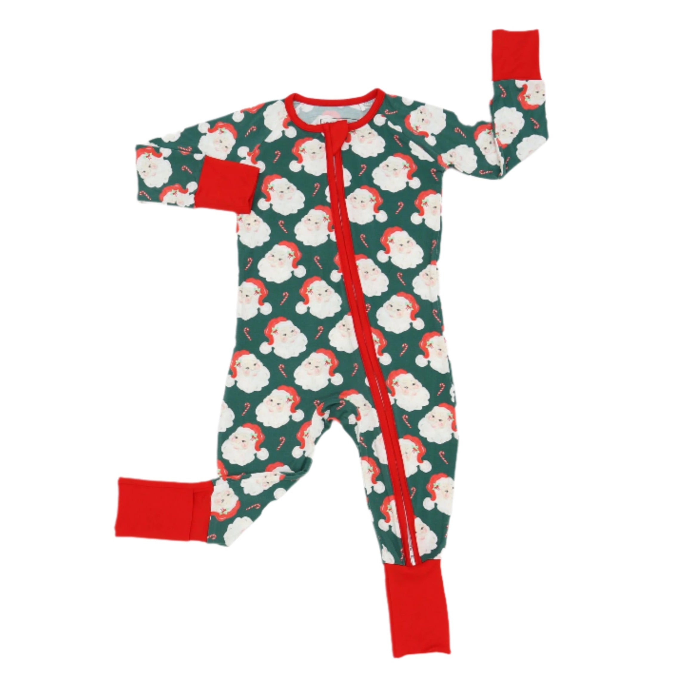 Green Classic Santa One Piece Bamboo Pajama