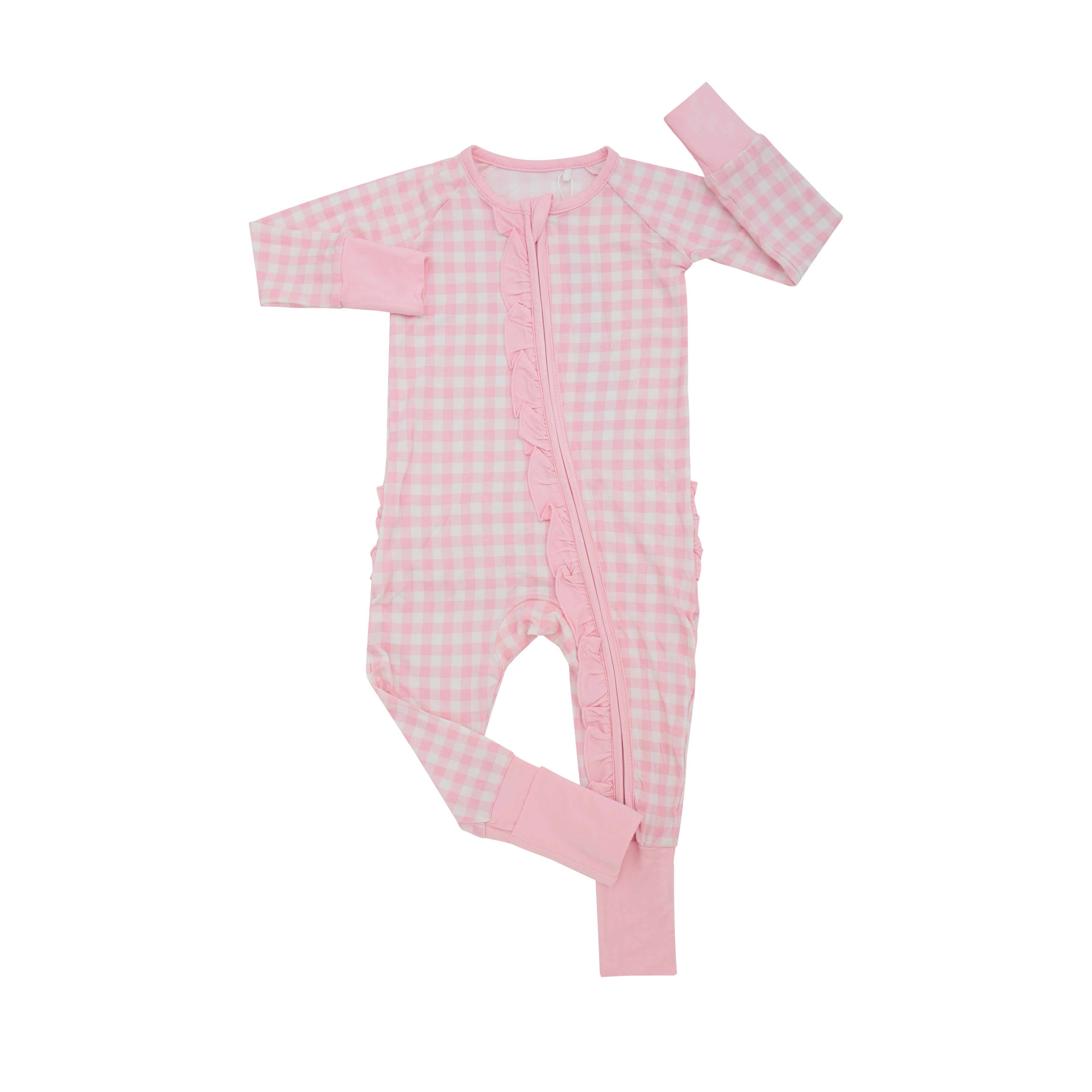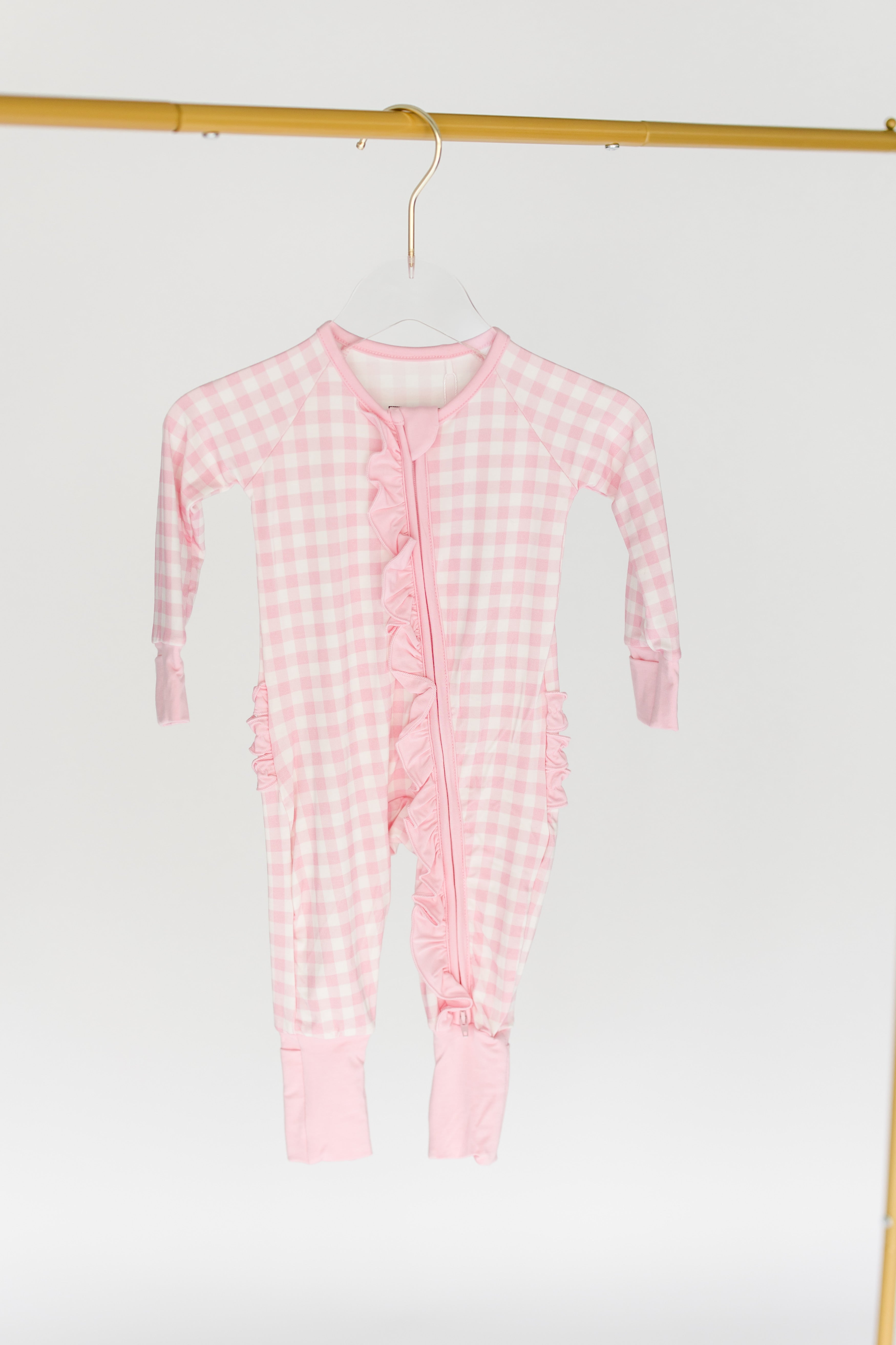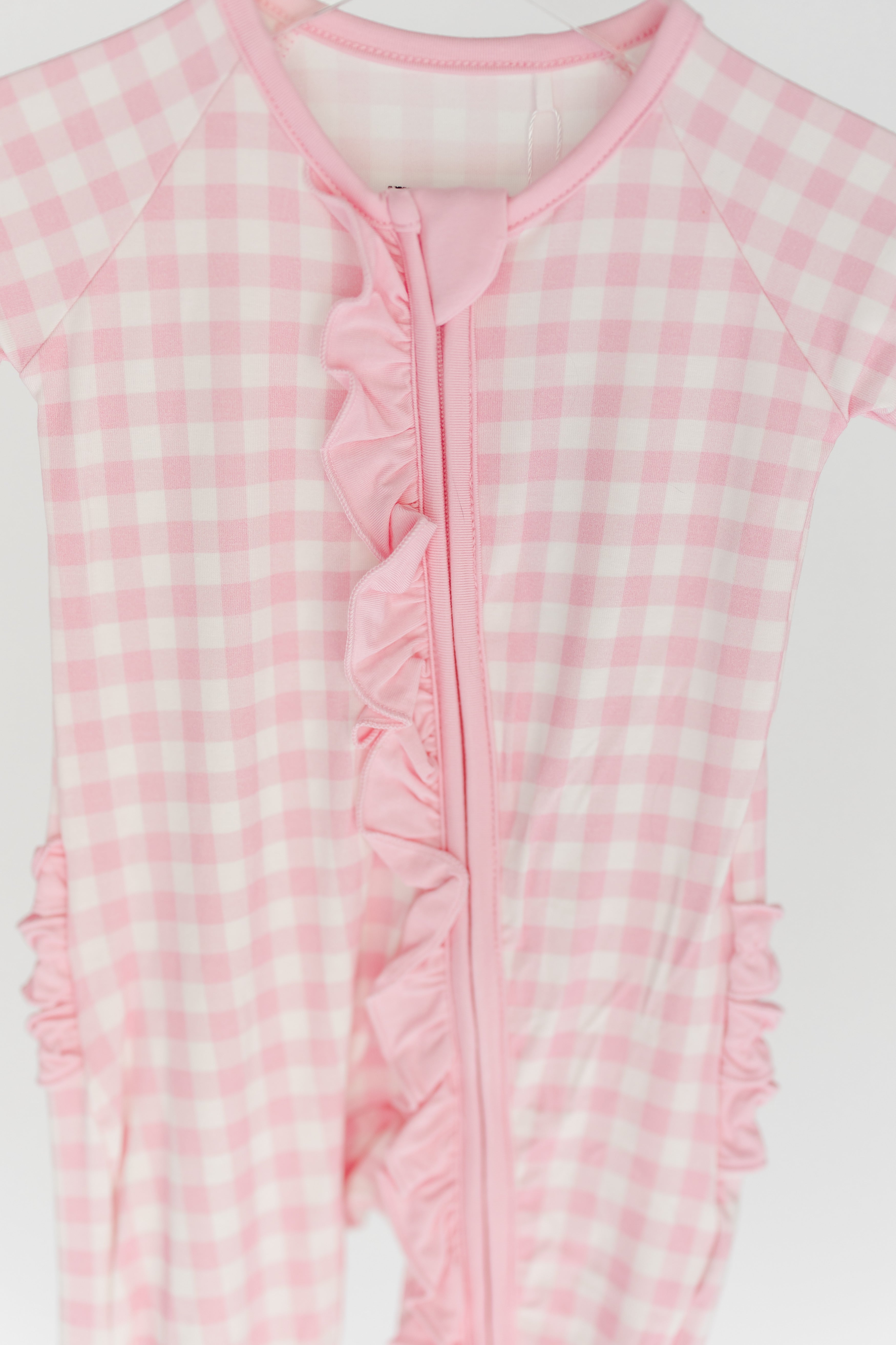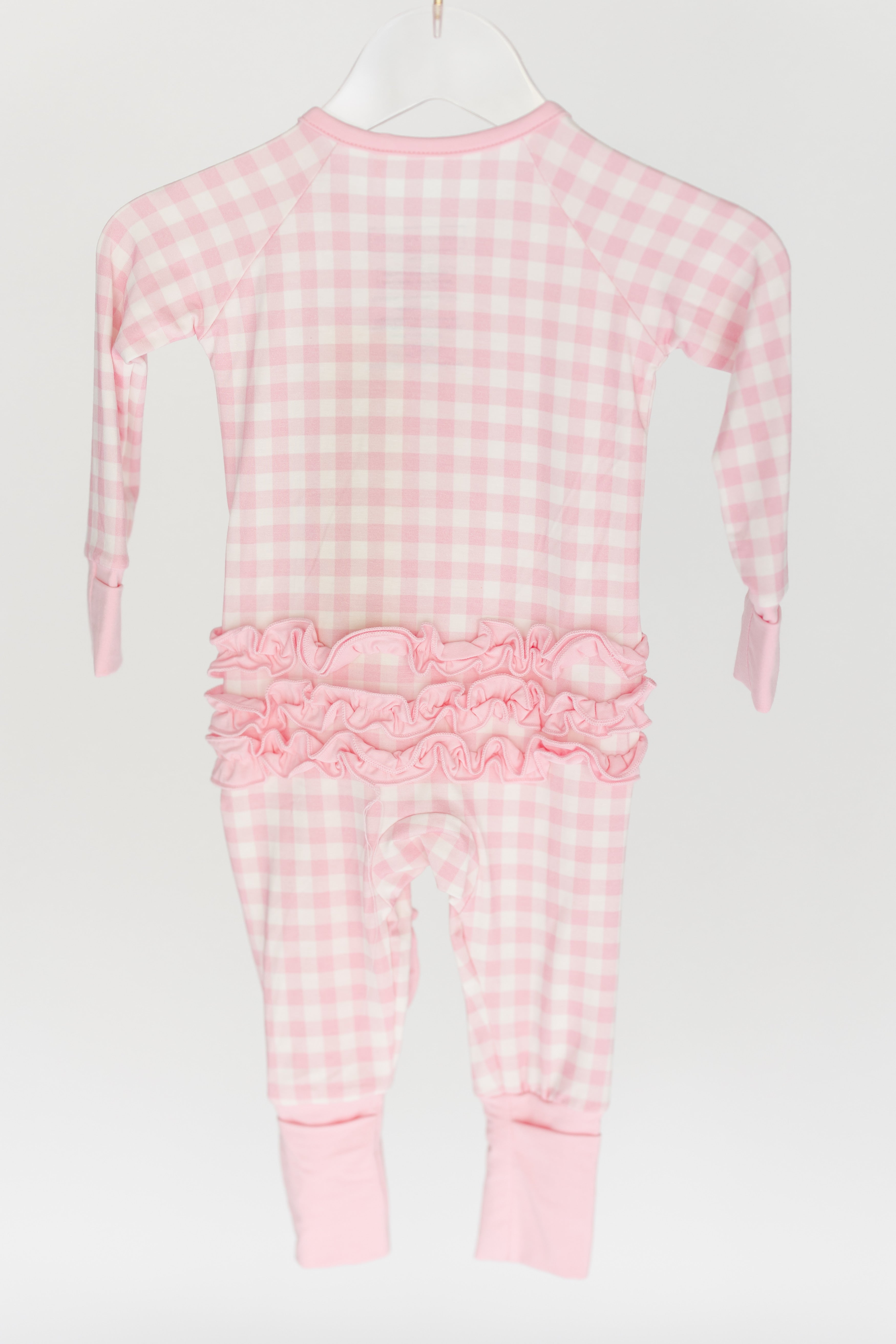 Pink Gingham Ruffle One Piece Bamboo Pajama