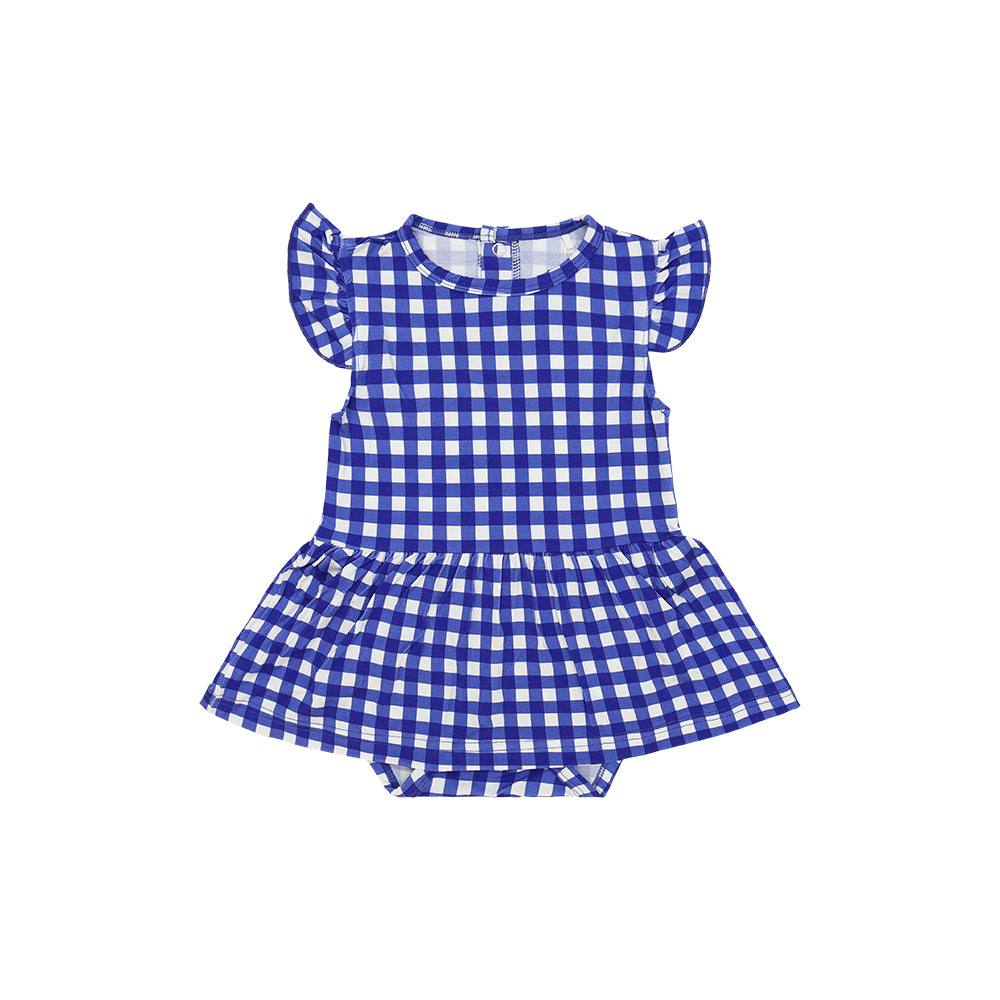 Blue Gingham Twirl Bamboo Bodysuit Dress
