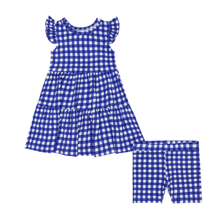 Our blue gingham twirl dress is great for everyday wear. It includes shorts for under the dress and is featured in our premium bamboo, so your little one will be kept both comfortable and cool, as this fabric is buttery-soft, breathable, and moisture wicking.
