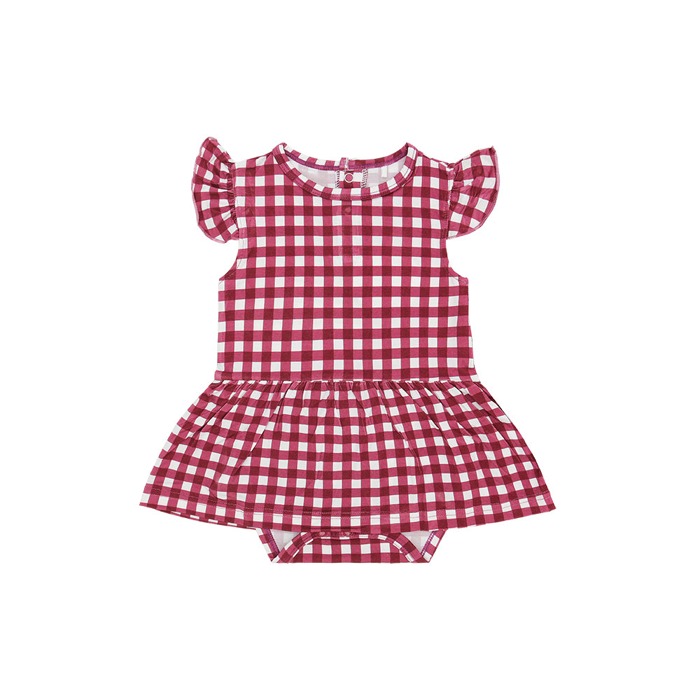 Garnet Gingham Twirl Bamboo Bodysuit Dress