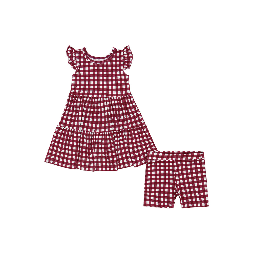 Our garnet gingham twirl dress is great for everyday wear. It includes shorts for under the dress and is featured in our premium bamboo, so your little one will be kept both comfortable and cool, as this fabric is buttery-soft, breathable, and moisture wicking.