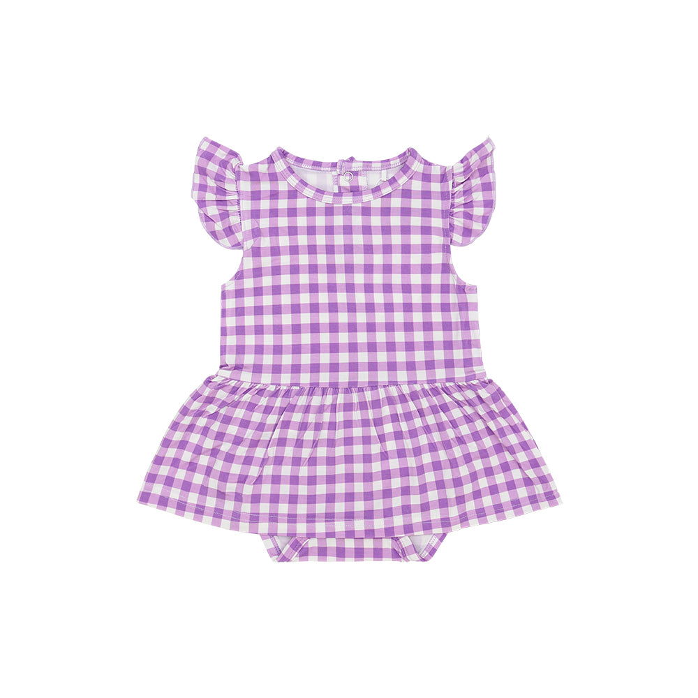 Purple Gingham Twirl Bamboo Bodysuit Dress