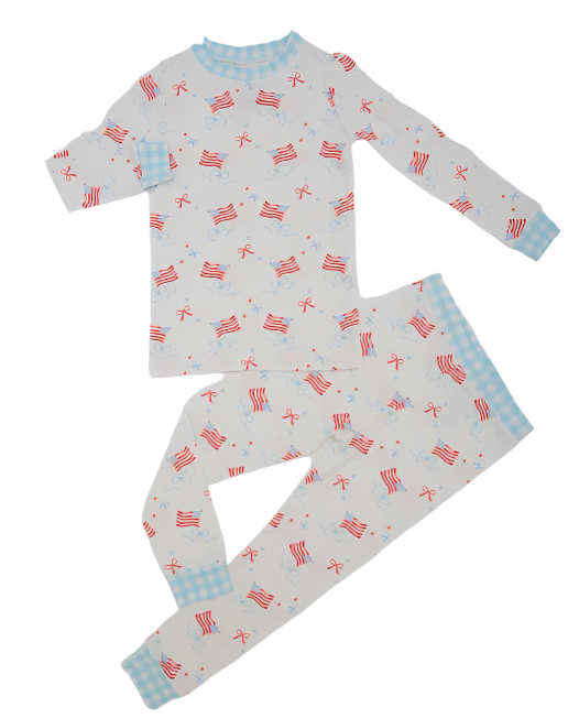 Flags and Bows Two Piece Bamboo Pajama Set