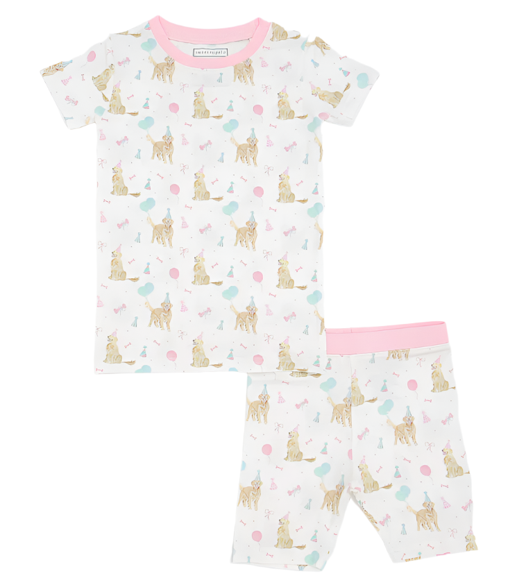 Our Golden Days pajamas encourage you to celebrate each day with as much joy as a Golden Retriever does. Our two piece short sleeve and shorts pajama set offer a classic and timeless look for the littlest loves in your life. Featured in our premium bamboo, your little one will be kept both comfortable and cool, as this fabric is buttery-soft, breathable, and moisture wicking.